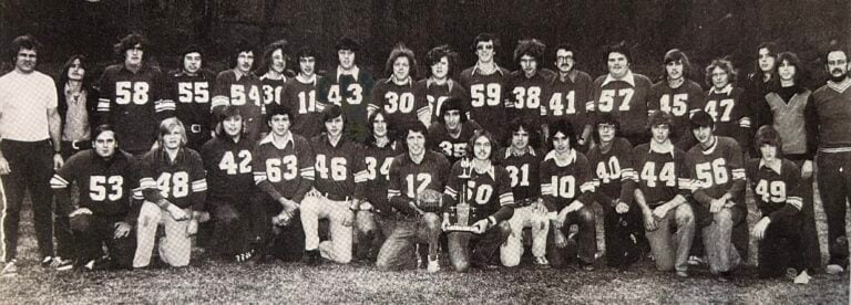During the 1970’s, Haliburton Highland Secondary School had a football program that was synonymous with excellence. Starting in 1972, the focus was on developing the potential of local football players. The coaching staff, Bob Colliver and Gary Brohman, were intentional about building a football program that could succeed at the regional level. More important was their goal of creating opportunities for as many school athletes as possible. They were rewarded for their efforts as the team grew from 40 to over 80 members by the 1980’s.